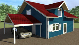 此款木屋設計為兩層樓,木房屋總面積100米²;一個外部車庫加住宅四室和廚房住宅。一樓的生活空間有53平方米,二樓47米²,車庫-