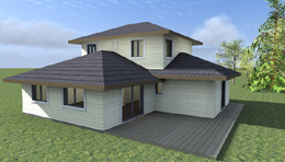 此款木屋設計為兩層樓,木房屋總面積168米²;一樓房子有寬敞的陽臺和三個浴室。房子套件包括屋頂;二樓包括外部和內部的墻壁,木制的雙層玻璃窗,門和樓梯;房頂蓋別墅專用玻纖瓦…